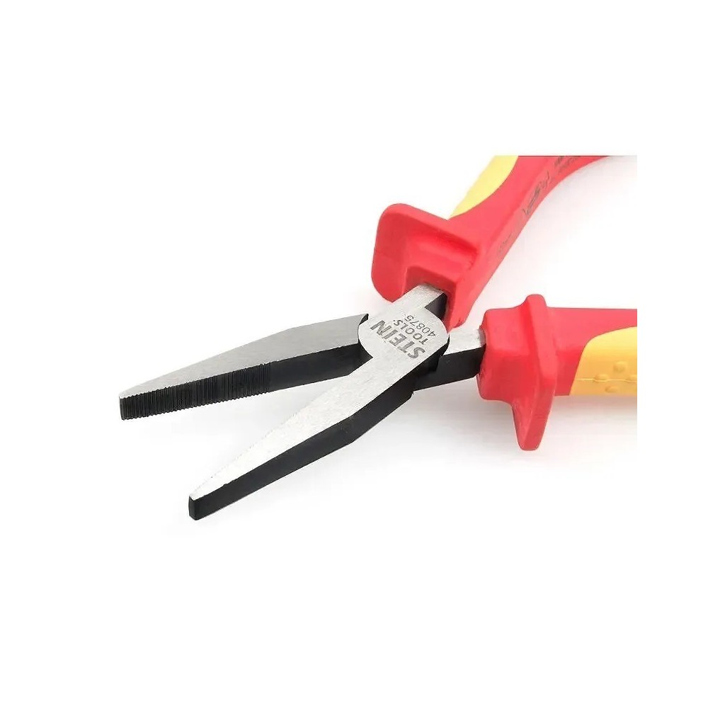 Alicate de boca plana de 160mm con mango aislante de 1000V de Stein, este alicate proporciona un rendimiento excepcional en trabajos eléctricos y garantiza la máxima protección contra descargas eléctricas.