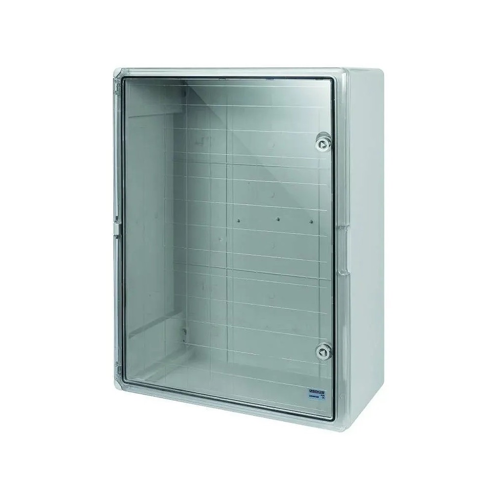 Armario Estanco con puerta transparente 500x700x250mm Fenoplastica de grado de protección IP65, con placa de montaje mecanizada incluida y fijaciones de sujeción a pared, fabricado con Abs libre de halógenos.