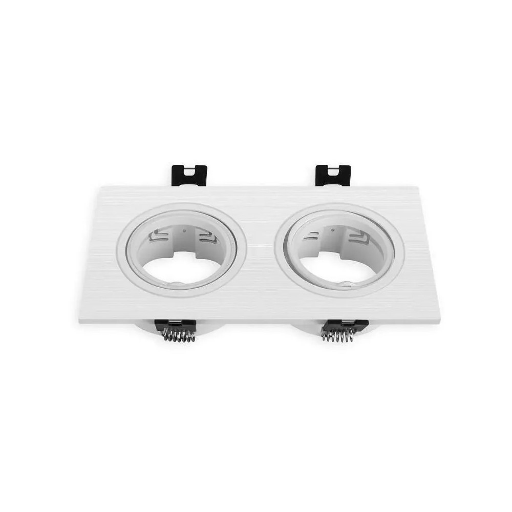 Ilumina tus espacios con estilo y eficiencia utilizando el Aro Doble Basculante GU10 Rectangular Blanco Matel, diseñado para cortes de Ø75 mm y compatible con bombillas LED GU10.