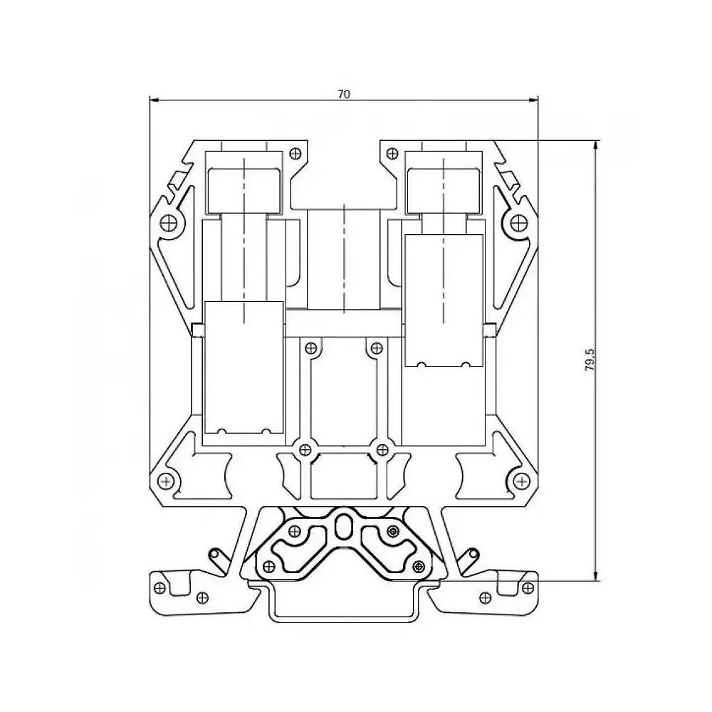 Bornas de conexión eléctrica por tornillos azul de 70mm2, para montaje sobre carril DIN, con cableado lateral y soporta una intensidad nominal de hasta 192A. Permite la conexión de cables de conductor rígido y flexible.