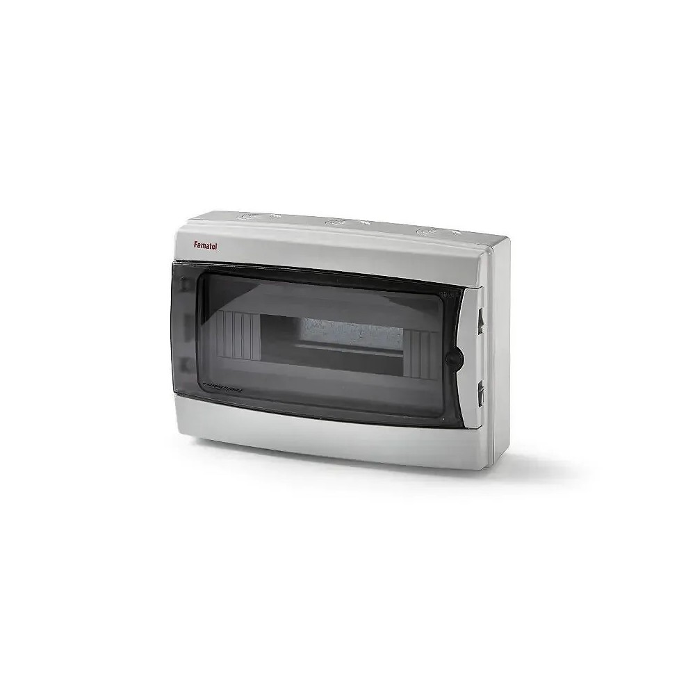 Armario de superficie 12 elementos 215x310x110 mm puerta transparente de Famatel, grado de protección IP65 hermético al polvo y resistente al agua de la serie ACQUA.