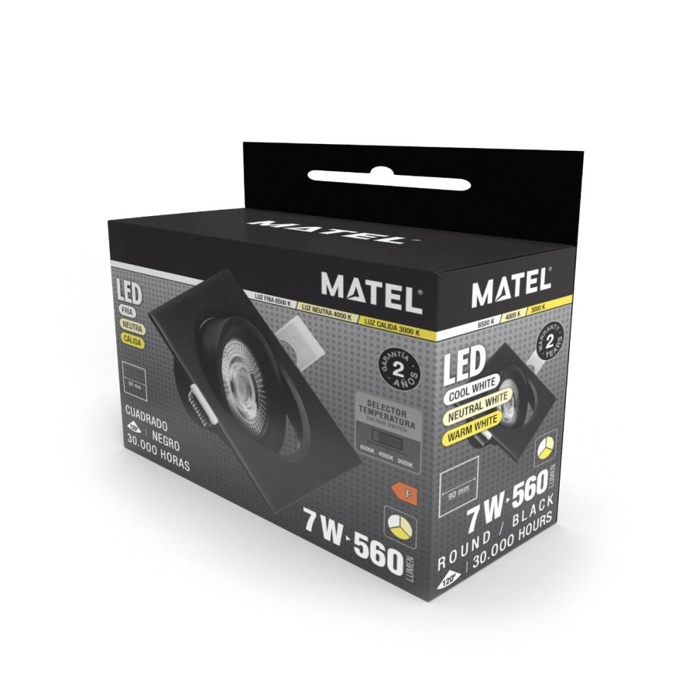 Foco Downlight LED Orientable Cuadrado Empotrable Negro 7W CCT de la marca Matel.