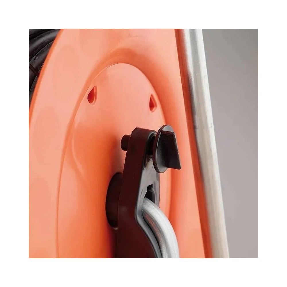 Enrollacable de 3 tomas industriales 2P+T 16A de 30 metros de cable Famatel 30002, protegido contra el agua y el polvo como indica su grado de protección IP67.