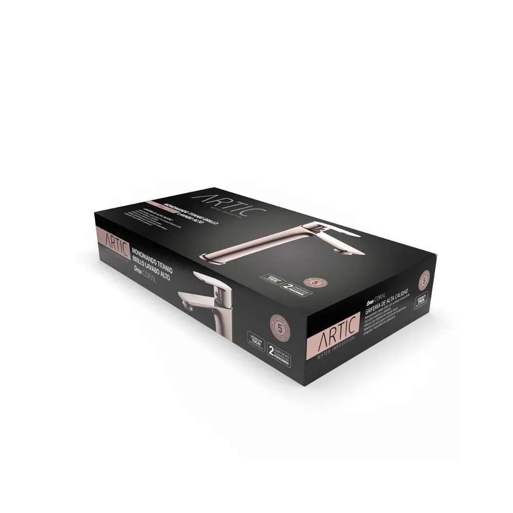 Grifo Monomando Lavabo Alto Coral Titanio Brillante Artic.