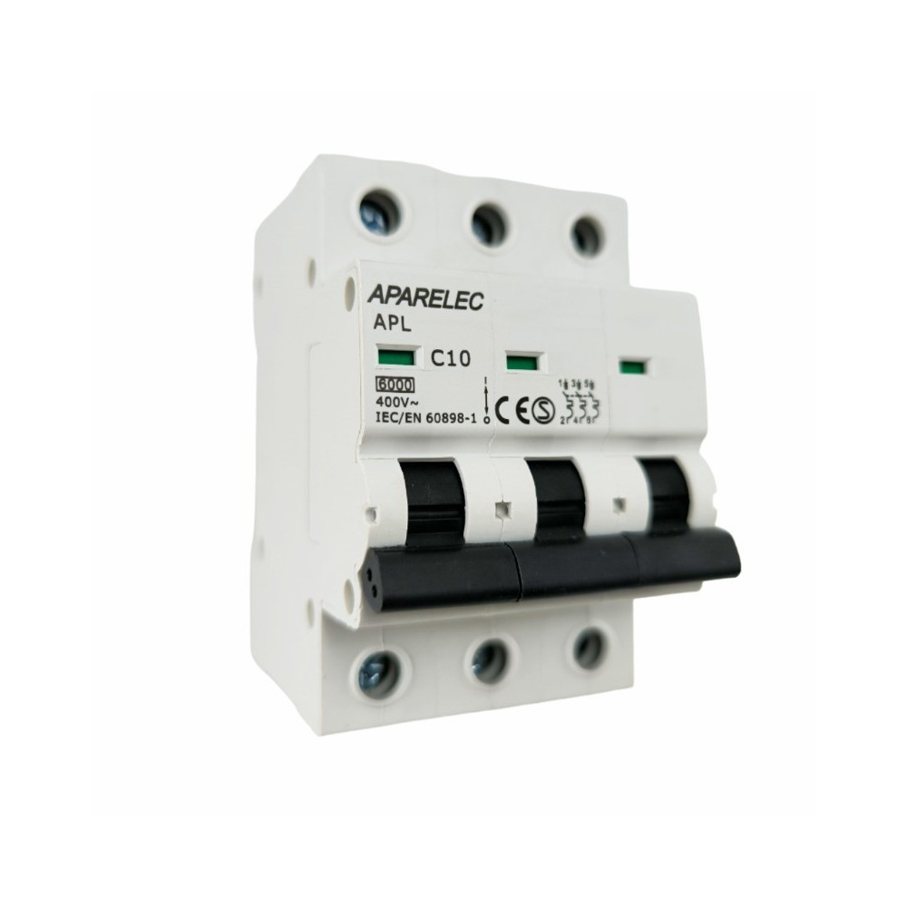 Protege tus instalaciones eléctricas con el Interruptor Automático Aparelec 3 Polos 10-63A 6kA, este automático garantiza la seguridad en tus sistemas trifásicos, previniendo sobrecargas y cortocircuitos. Ideal para aplicaciones residenciales, comerciales e industriales.