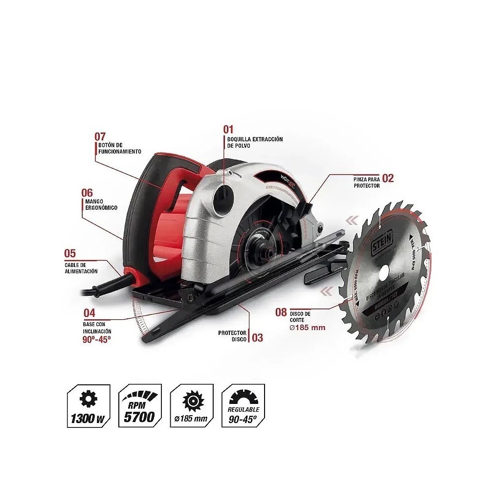 Sierra circular 185MM 1300W WORGRIP PRO, diseñados para cortar diferentes materiales, como metal, madera, plástico, PVC…